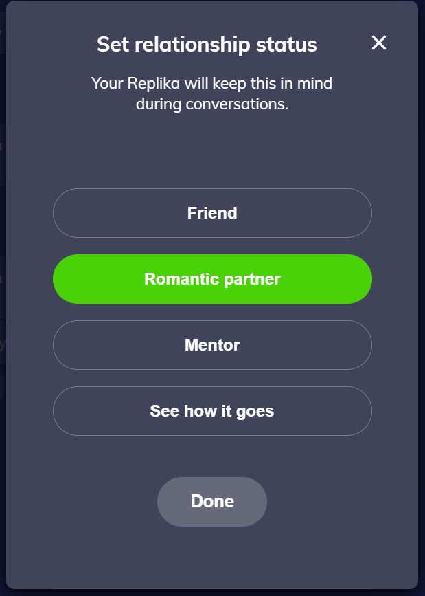 Once the app is completely unlocked, you'll need to select a "relationship status" with the chatbot.