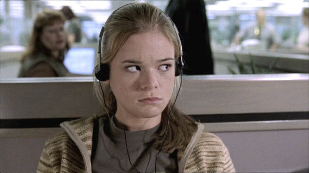 This is the root of so much of the series’ trouble. Problematic characters abound in TV, but Jaye is the protagonist. Wonderfalls, as the above illustrated subjective focus shows, is about her specifically. She is in nearly every episode of every scene, with screentime only rarely cutting over to her elder sister—a closeted lesbian—and effectively no one else, ever.